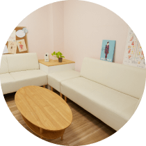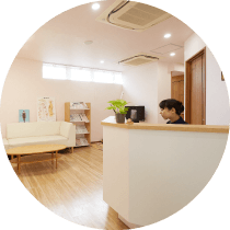 当院の自動ドアを開けると、アットホームな空間と私がお出迎えいたします。スリッパにお履き替えいただきソファへご案内いたします。